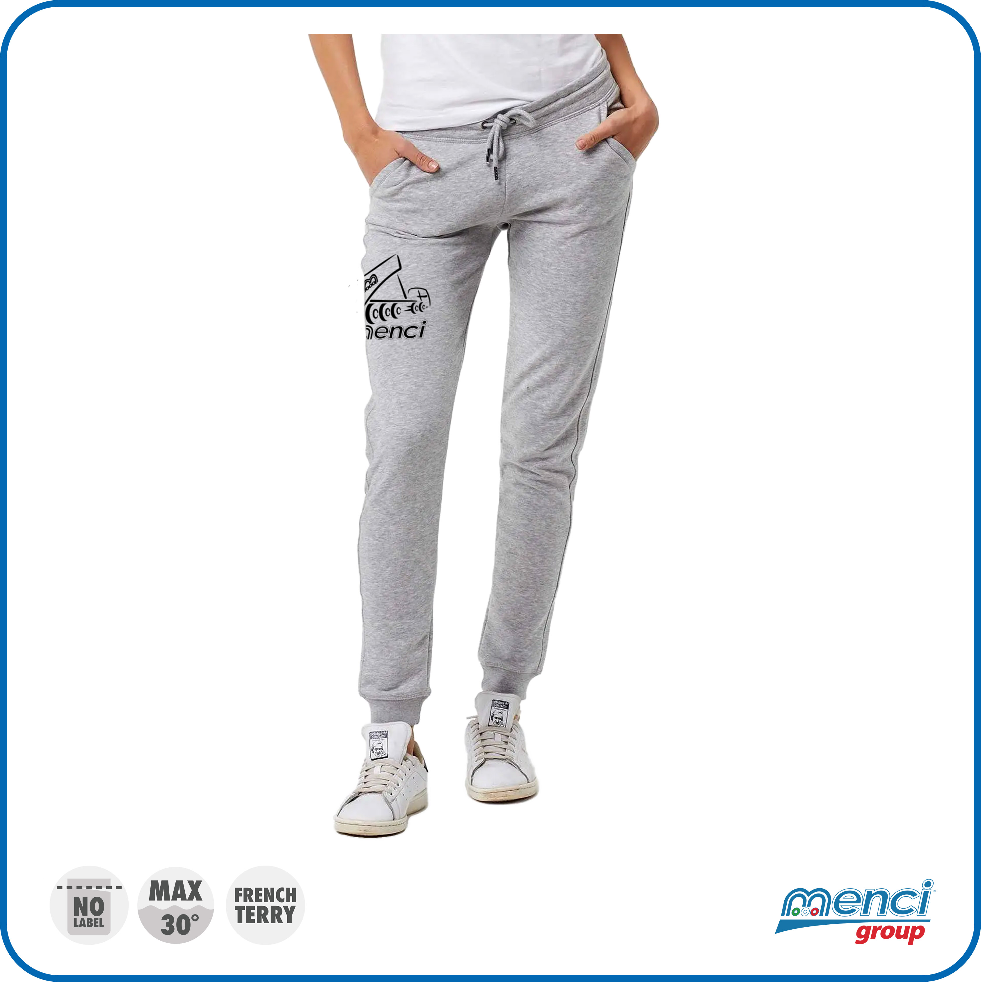 Pantaloni tuta donna grigio chiaro con applicato logo ribaltabile Menci
