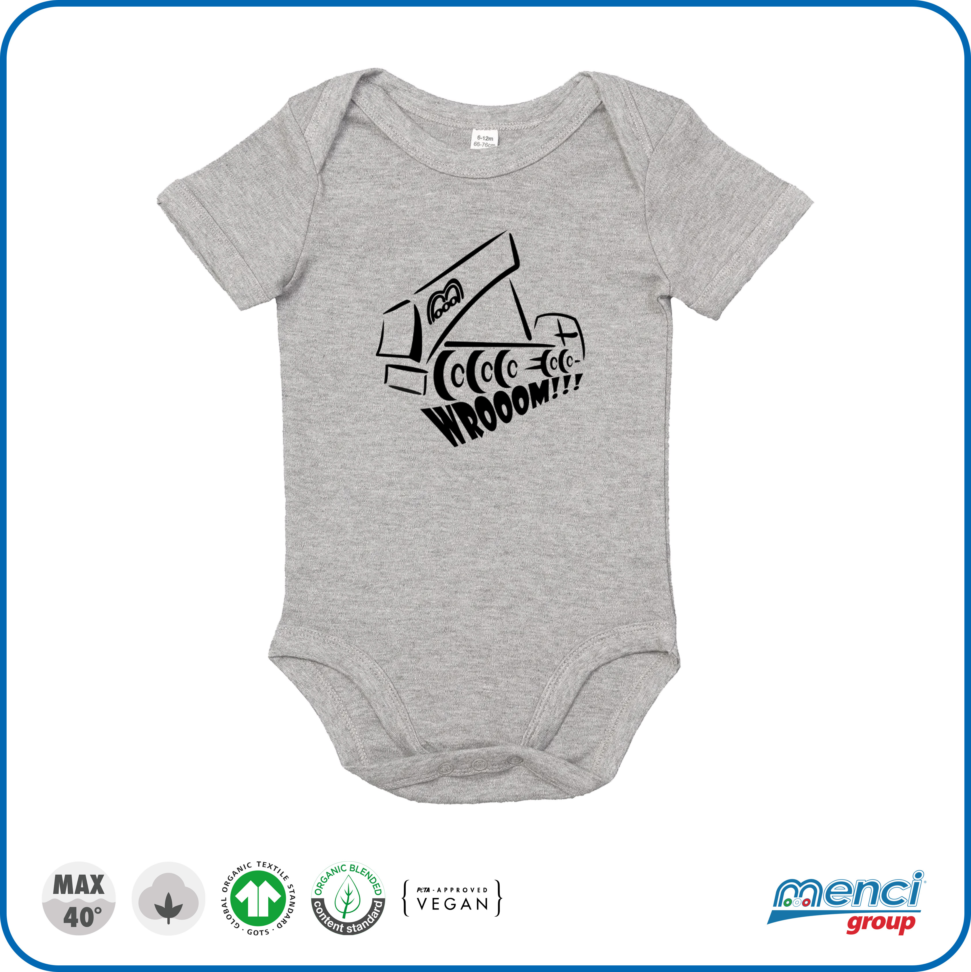 Body bambino/a con applicato il logo ribaltabile Menci.