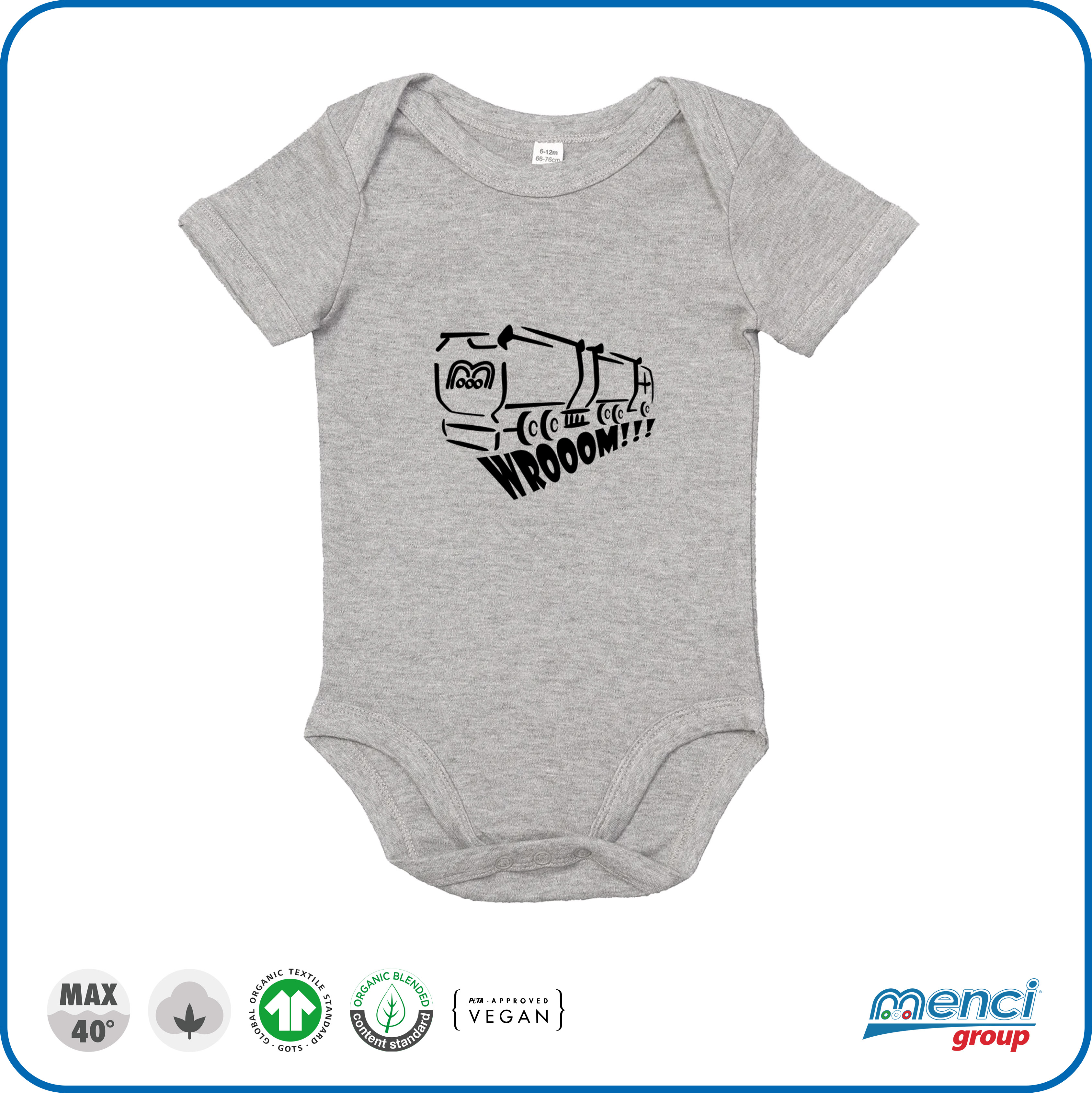 Body bambino/a con applicato il logo ribaltabile Menci.