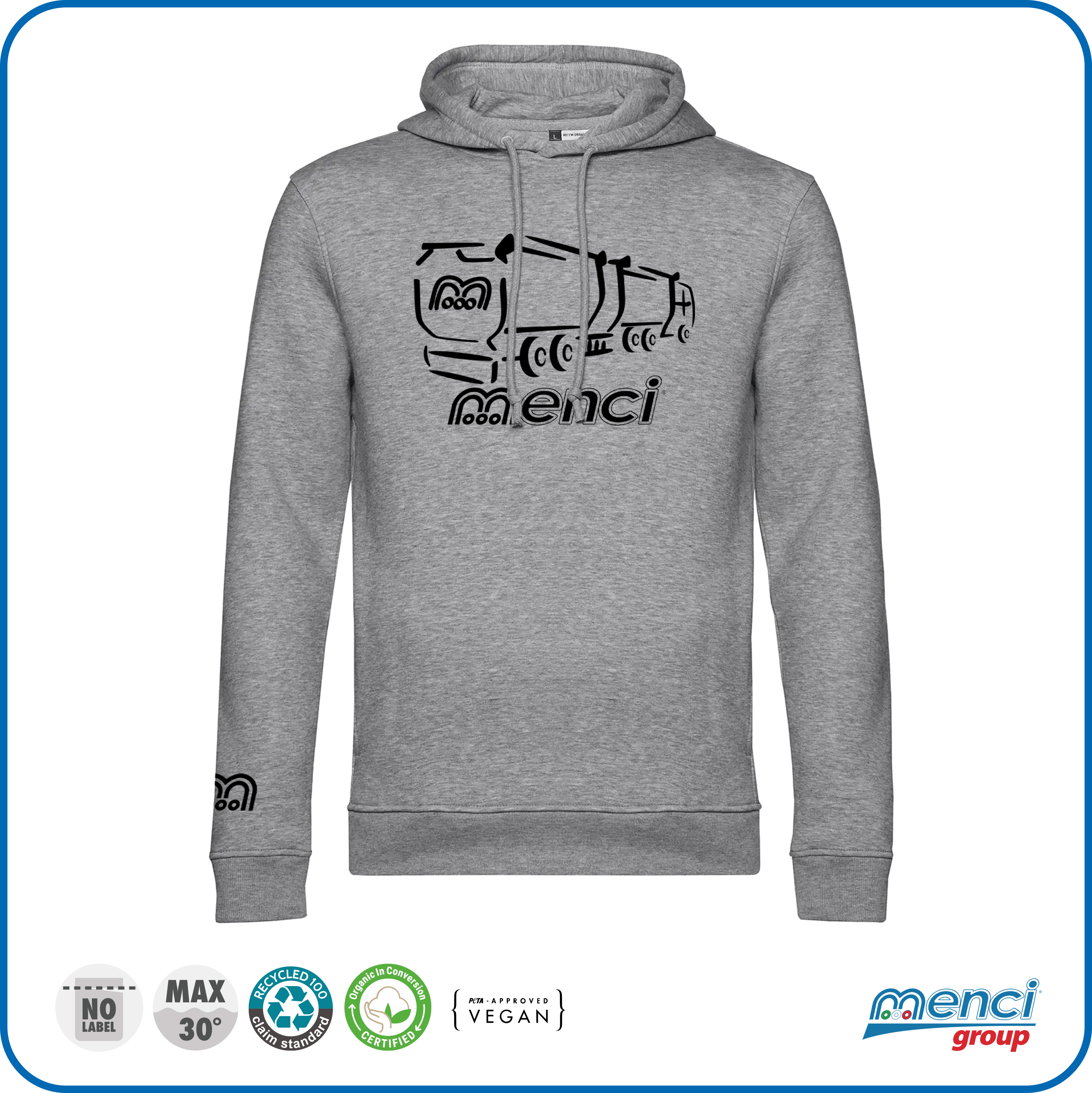 Felpa grigio chiaro melange con logo cisterna mangime Menci Goup.