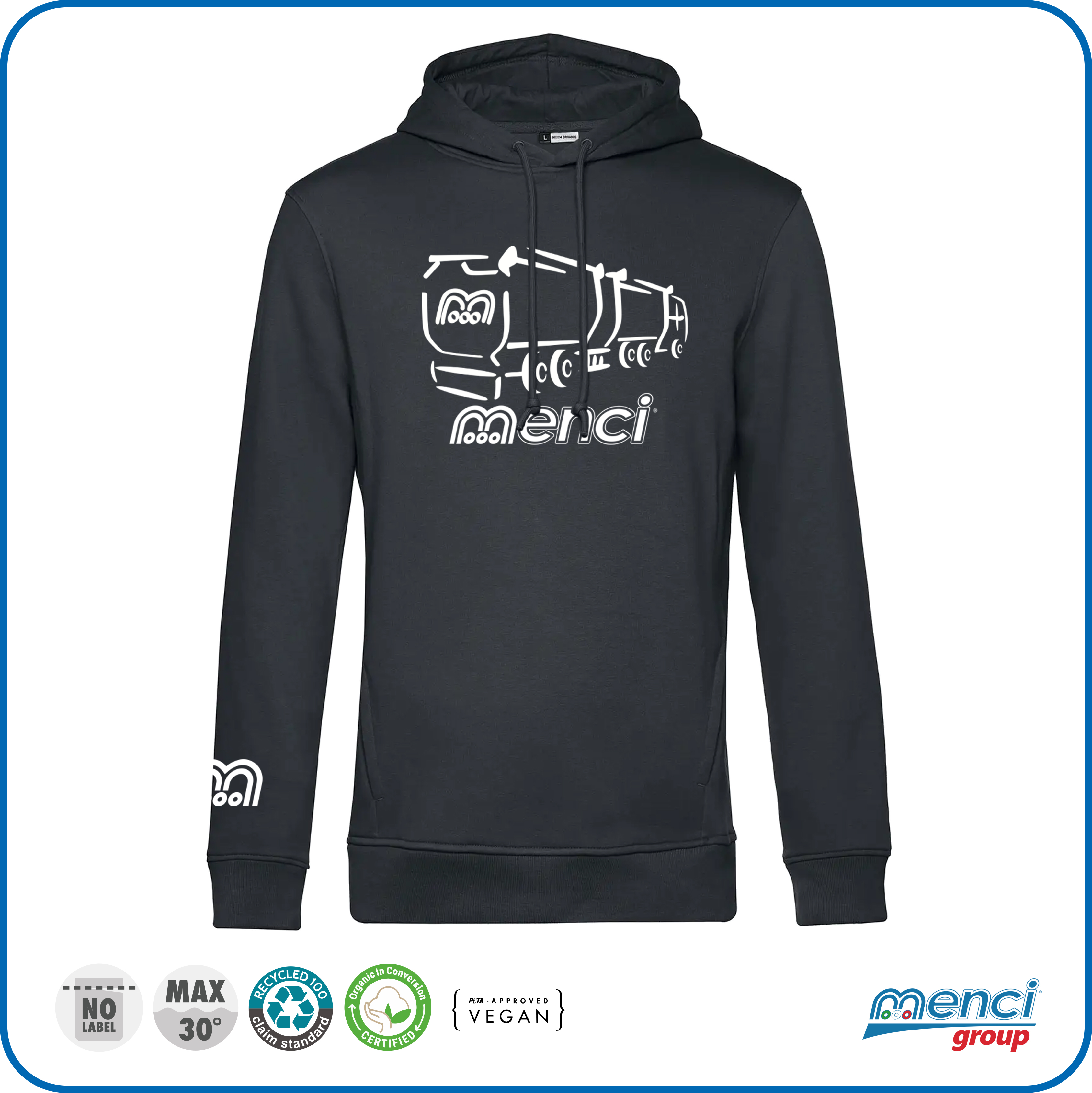 Cappuccio foderato in jersey, tasche inserite nelle cuciture laterali, nastro para sudore a spina di pesce di alta qualità, mezzaluna in single jersey sulla schiena